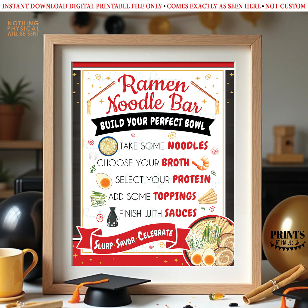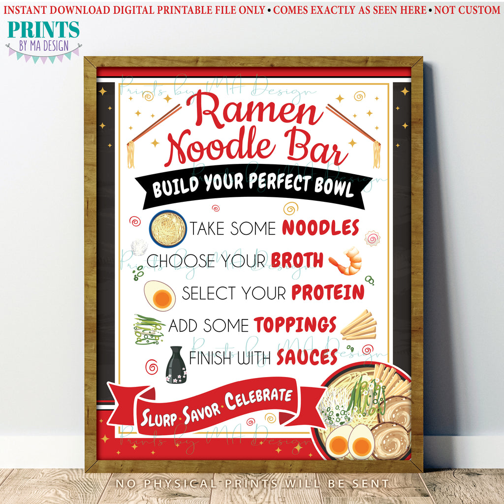 Ramen Noodle Bar Sign, Build Your Own Noodle Bowl Directions, Party Food Station Buffet Sign, Teacher Appreciation, Red PRINTABLE 8x10/16x20” Sign, Instant Download Digital Printable File
